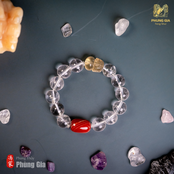 Khi kết hợp ba nguồn năng lượng mạnh mẽ gồm Tỳ Hưu, thạch anh trắng và hồng vận châu, Vòng Tay Kim Tỳ Bảo không chỉ mang giá trị phong thủy đơn thuần mà còn trở thành vật phẩm hộ mệnh toàn diện cho chủ nhân. Năng lượng từ vòng tay tạo nên trường khí ổn định, giúp công việc hanh thông, tinh thần sáng suốt và vận may tăng trưởng. Dưới đây là những công năng nổi bật mà gia chủ sẽ cảm nhận được khi sở hữu Vòng Tay Kim Tỳ Bảo: